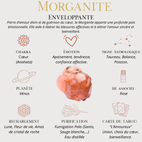 Relié aux chakras du cœur et de la gorge, il aide à exprimer la vérité avec amour.