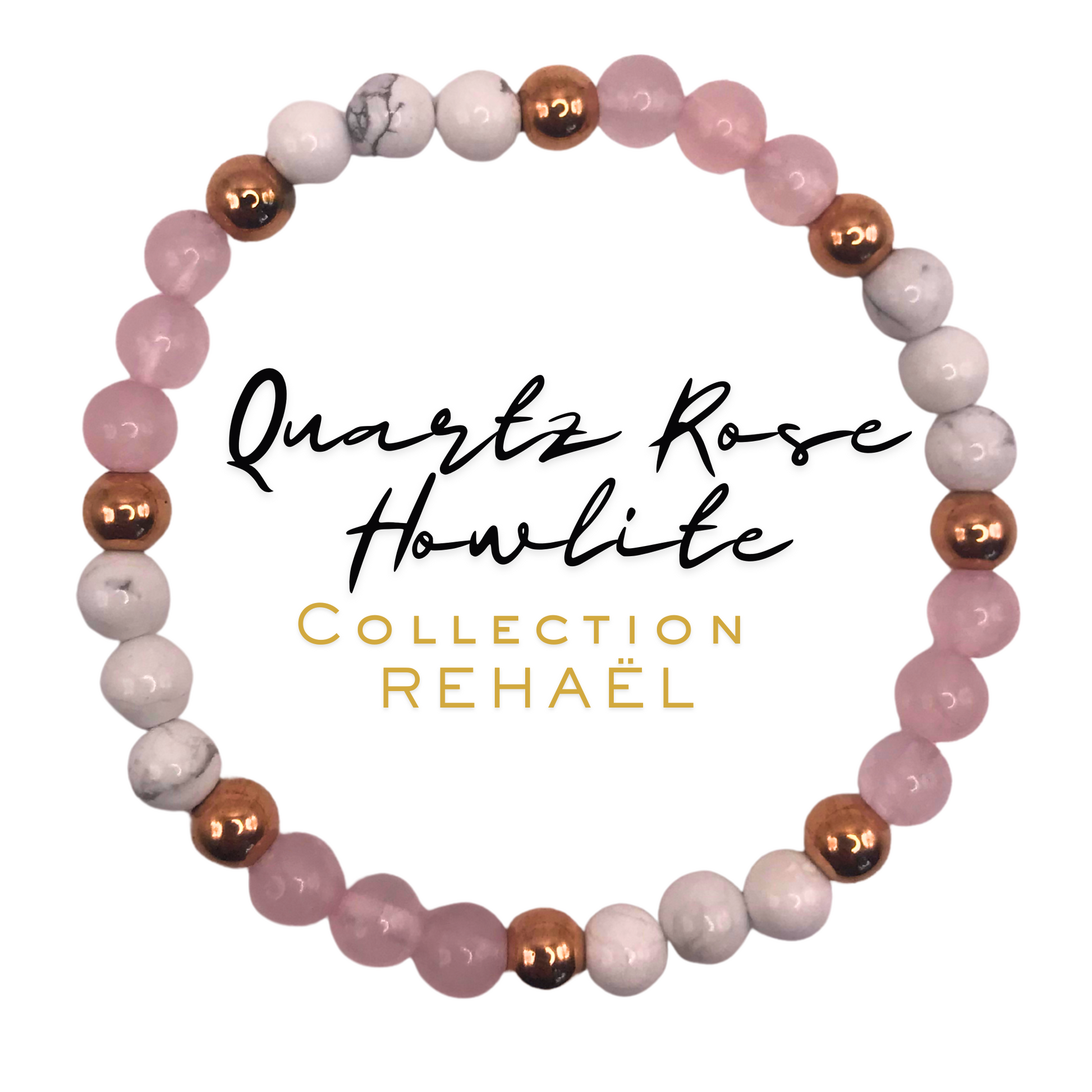 Bracelet sur mesure_Collection "REHAEL"_Quartz Rose, Hématite cuivrée & Howlite