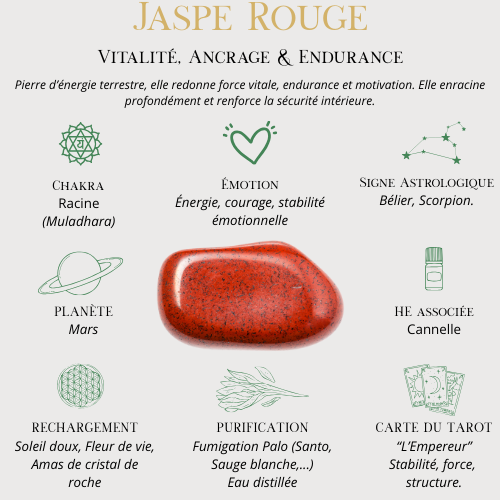 Jaspe rouge : chakra racine – ancrage, courage et force vitale